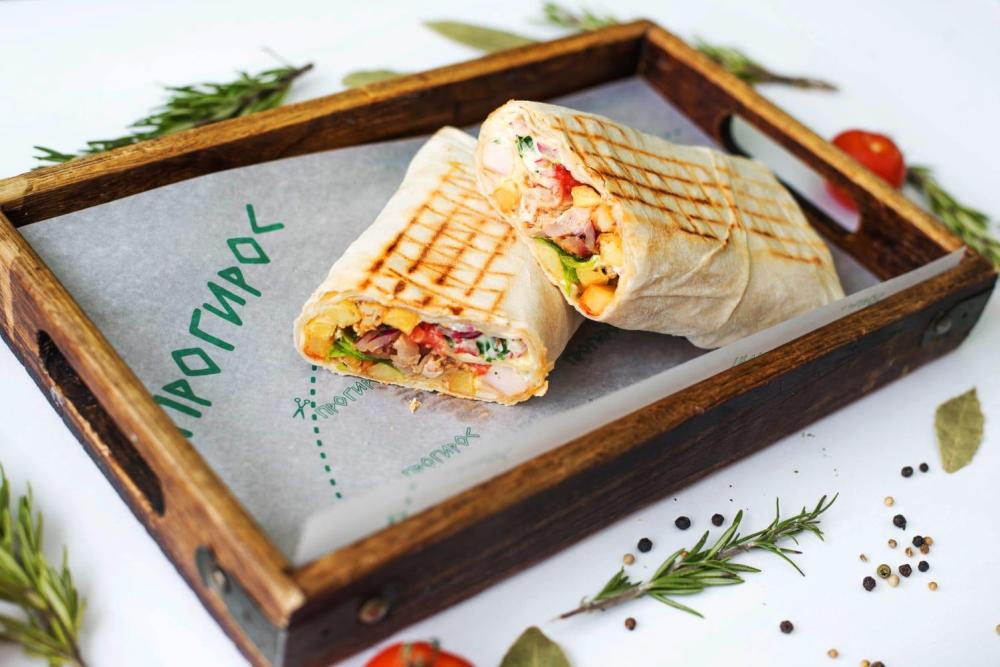 Лаваш. свинина, лук, помидор, салат, картофель фри , соус лимонный, соус дзадзыки